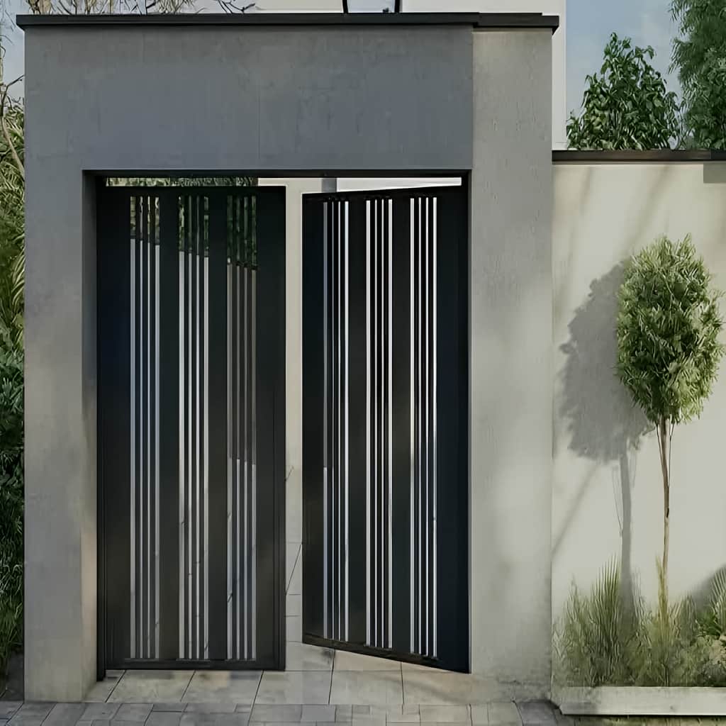 بازشو درب مدرن ویولا درب مدرن ویولا قابلیت اجرا به صورت لولایی با لولای بلبرینگی و یا ریلی روی ریل زمینی یا دیواری را دارد و نوع بازشو با توجه به شیب کف, فضای چرخش خودرو و محدودیت های محوطه, در مرحله طراحی فنی تعیین می شود.